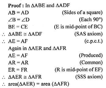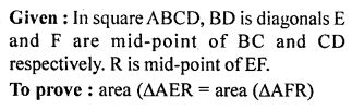 In the given figure, ABCD is a square. E and F are mid-points of sides BC and CD respectively. If R is mid-point of EF, prove that: area of ∆AER = area of ∆AFR.
