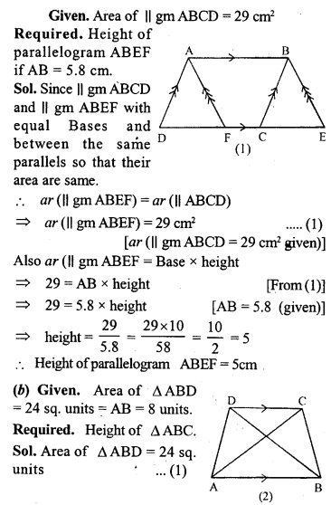 (a) In the figure (1) given below, area of parallelogram ABCD is 29 cm2. Calculate the height of parallelogram ABEF if AB = 5.8 cm