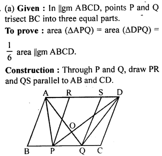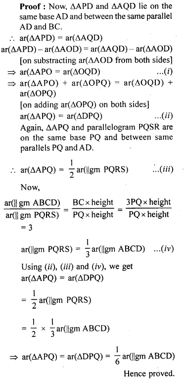 area of ∆APQ = area of ∆DPQ = \(\frac { 1 }{ 6 }\) (area of ||gm ABCD)