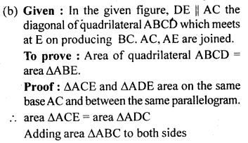 (b) In the figure (2) given below, DE is drawn parallel to the diagonal AC of the quadrilateral ABCD to meet BC produced at the point E. Prove that area of quad. ABCD = area of ∆ABE.