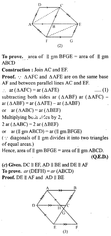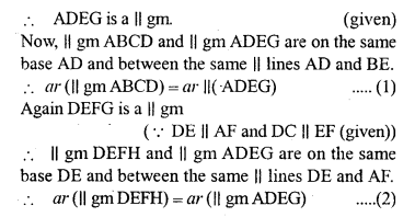 (c) In the figure (3) given below AB || DC || EF, AD || BEandDE || AF. Prove the area ofDEFH is equal to the area of ABCD.