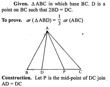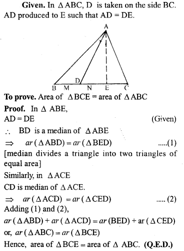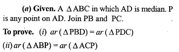 A median of a triangle divides it into two triangle equal in area. (a)