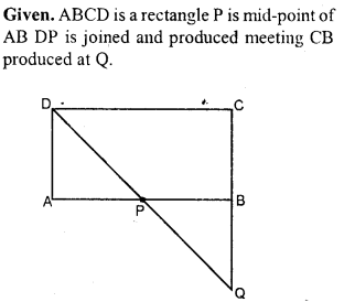 ABCD is a rectangle and P is mid-point of AB. DP is produced to meet CB at Q. Prove that area of rectangle ∆BCD = area of ∆ DQC.