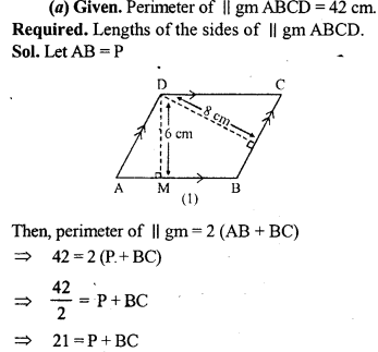 (a) In the figure (1) given below, the perimeter of parallelogram is 42 cm. Calculate the lengths of the sides of the parallelogram.