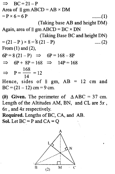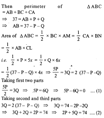 (b) In the figure (2) given below, the perimeter of ∆ ABC is 37 cm. If the lengths of the altitudes AM, BN and CL are 5x, 6x, and 4x respectively, Calculate the lengths of the sides of ∆ABC.