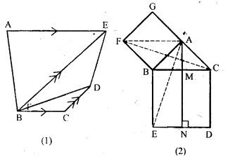 (b) In the fig. (2) given below, the side AB of the parallelogram ABCD is produced to E. A st. line At through A is drawn parallel to CE to meet CB produced at F and parallelogram BFGE is Completed prove that area of || gm BFGE=Area of || gmABCD.