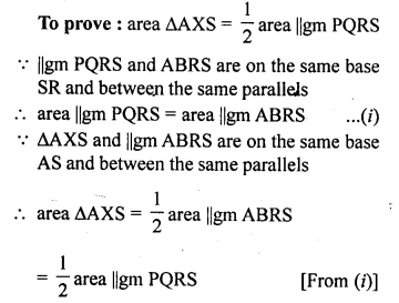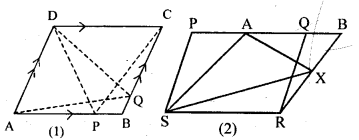 (b) In the figure (2) given below, PQRS and ABRS are parallelograms and X is any point on the side BR. Show that area of ∆ AXS = \(\frac { 1 }{ 2 }\) area of ||gm PQRS