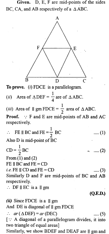 (ii) area of ADEF = \(\frac { 1 }{ 4 }\) area of A ABC