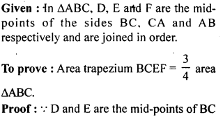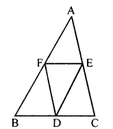 In the given figure, D, E and F are mid points of the sides BC, CA and AB respectively of AABC. Prove that BCEF is a trapezium and area of trap. BCEF = \(\frac { 3 }{ 4 }\) area of ∆ ABC.