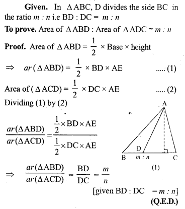 (a) In the figure (1) given below, the point D divides the side BC of ∆ABC in the ratio m : n. Prove that area of ∆ ABD: area of ∆ ADC = m : n.