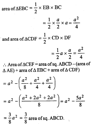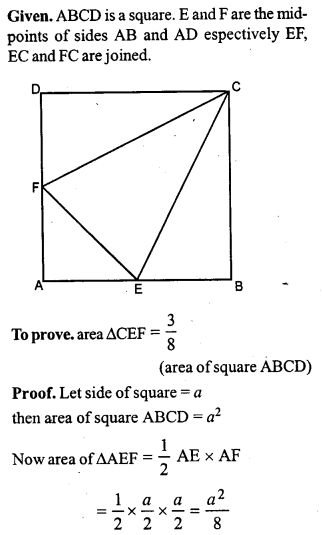 ABCD is a square, E and F are mid-points of the sides AB and AD respectively Prove that area of ∆CEF = \(\frac { 3 }{ 8 }\) (area of square ABCD).