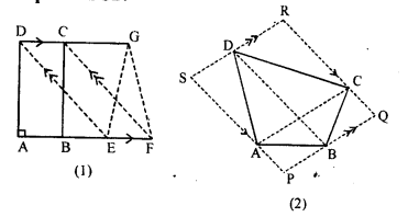 (b) In the figure (2) given below, PQRS is a parallelogram formed by drawing lines parallel to the diagonals of a quadrilateral ABCD through its corners. Prove that area of || gm PQRS = 2 x area of quad. ABCD.