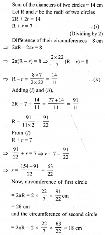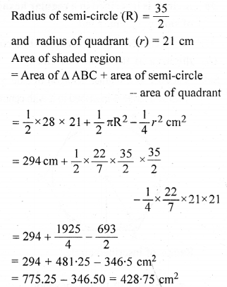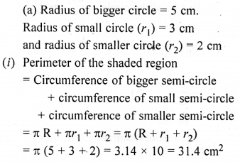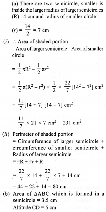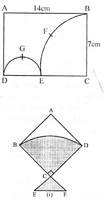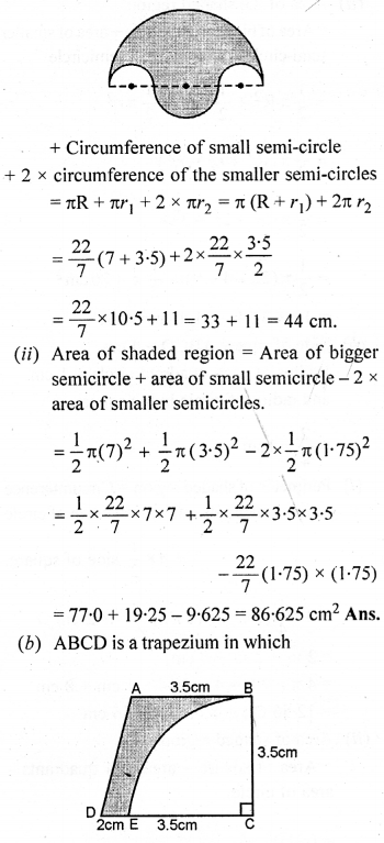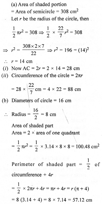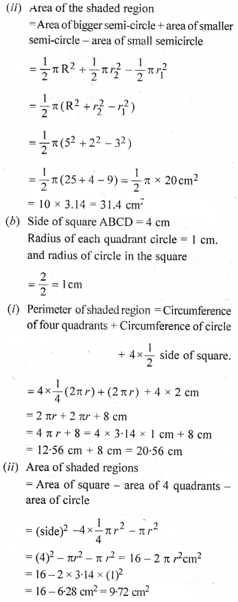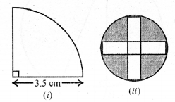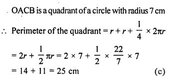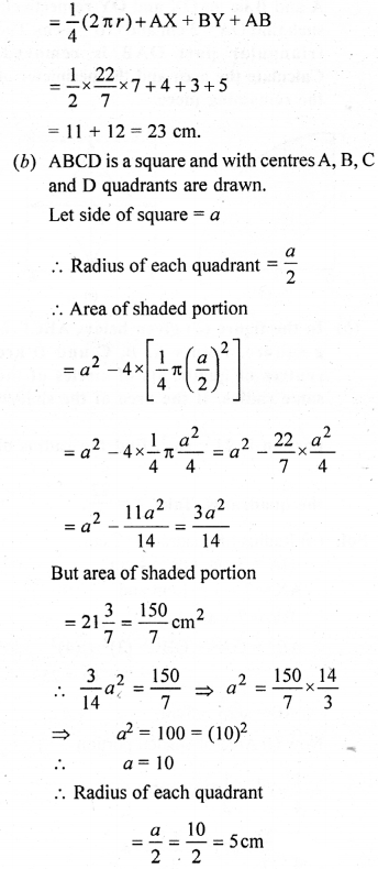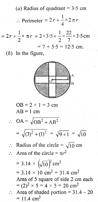 (a) In the figure (1) given below, the radius is 3.5 cm. Find the perimeter of the quarter of the circle.