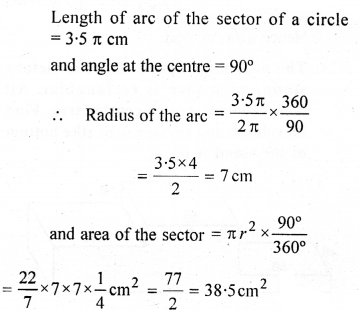 Find the radius of a circle if a 90° arc has a length of 3.5 n cm. Hence, find the area of sector formed by this arc.