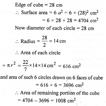 A cube whose each edge is 28 cm long has a circle of maximum radius on each of its face painted red. Find the total area of the unpainted surface of the cube.