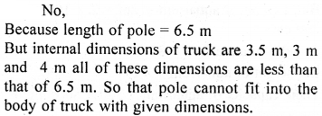 Can a pole 6.5 m long fit into the body of a truck with internal dimensions of 3.5m, 3 m and 4m?