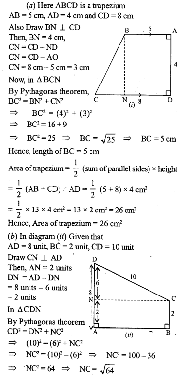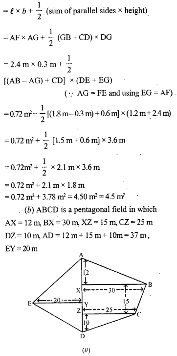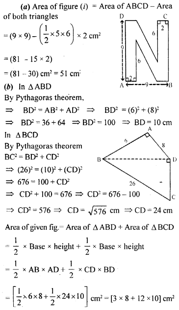 (b) Find the area of the quadrilateral ABCD shown in figure (ii) given below. All measurements are in centimetres.