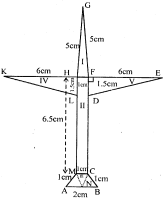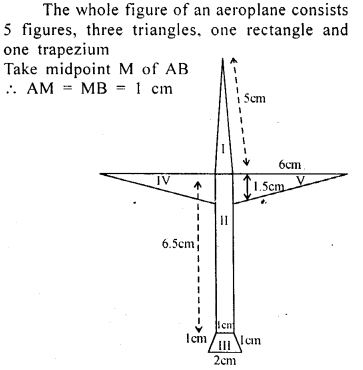 Asifa cut an aeroplane from a coloured chart paper (as shown in the adjoining figure). Find the total area of the chart paper used, correct to 1 decimal place.