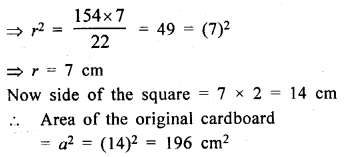 From a square cardboard, a circle of biggest area was cut out. If the area of the circle is 154 cm2, calculate the original area of the cardboard.