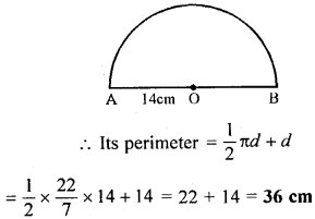 (b) If the diameter of a semicircular protractor is 14cm, then find its perimeter.