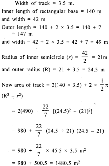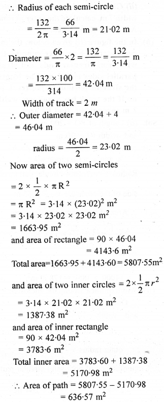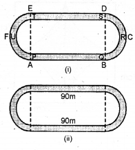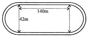 The adjoining sketch shows a running tract 3.5 m wide all around which consists of two straight paths and two semicircular rings. Find the area of the track.