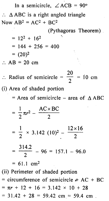 (ii) Find the area of the shaded region. (Take π= 3.14).