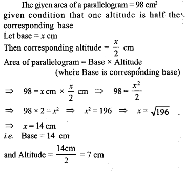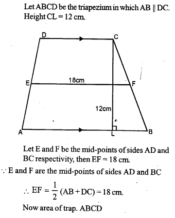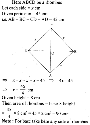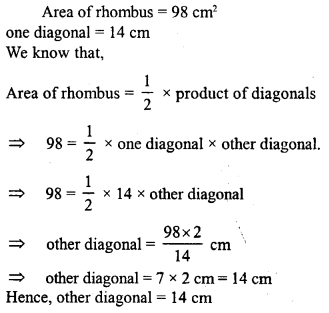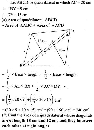 (i) Find the area of quadrilateral whose one diagonal is 20 cm long and the perpendiculars to this diagonal from other vertices are of length 9 cm and 15 cm.