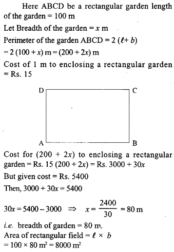 The cost of enclosing a rectangular garden with a fence all around at the rate of Rs. 15 per metre is Rs. 5400. If the length of the garden is 100 m And the area of the garden.