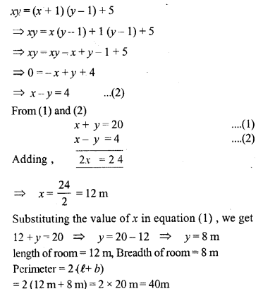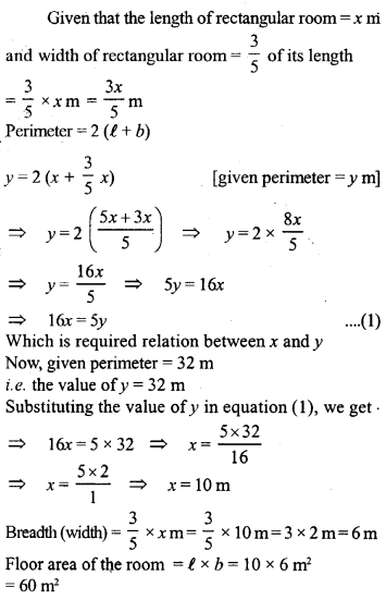 The width of a rectangular room is \(\frac { 3 }{ 5 }\) of its length x metres. If its perimeter isy metres, write an equation connecting.vandy. Find the floor area of the room if its perimeter is 32 m.