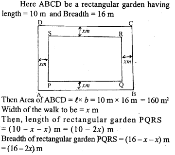 A rectangular garden 10 m by 16 m is to be surrounded by a concrete walk of uniform width. Given that the area of the walk is 120 square metres, assuming the width of the walk to be x, form an equation in x and solve it to find the value of x.