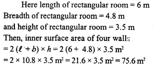 A rectangular room is 6 m long, 4.8 m wide and 3.5 m high. Find the inner surface area of the four walls.