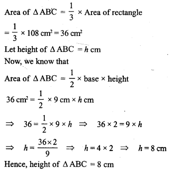 The length and the breadth of a rectangle are 12 cm and 9 cm respectively. Find the height of a triangle whose base is 9 cm and whose area is one third that of rectangle.
