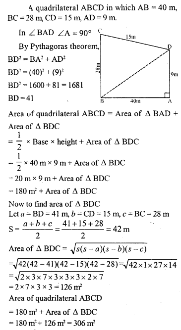 Find the area of the quadrilateral field ABCD whose sides AB = 40 m, BC = 28 m, CD = 15 m, AD = 9 m and ∠A = 90°