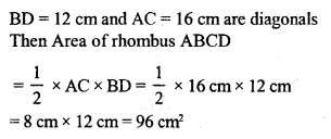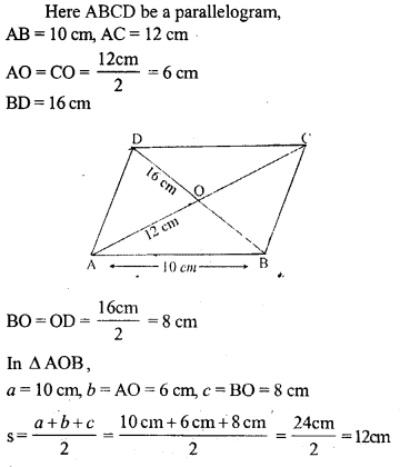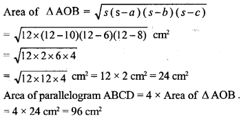 ABCD is a parallelogram with side AB = 10 cm. Its diagonals AC and BD are of length 12 cm and 16 cm respectively. Find the area of the parallelogram ABCD.