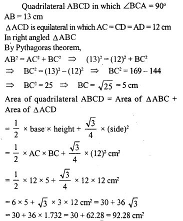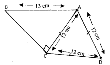 Find the area of the quadrilateral ABCD in which ∠BCA= 90°, AB = 13 cm and ACD is an equilateral triangle of side 12 cm.