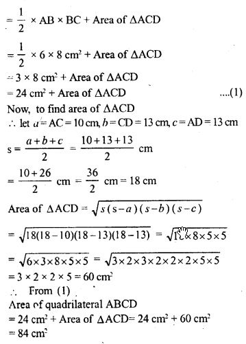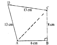 Find the area of quadrilateral ABCD in which ∠B = 90°, AB = 6 cm, BC = 8 cm 13 and CD = AD = 13 cm.
