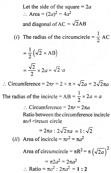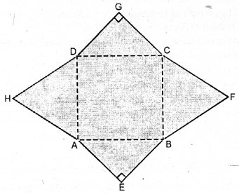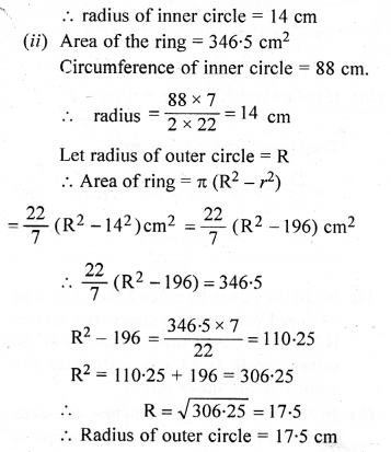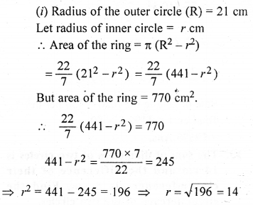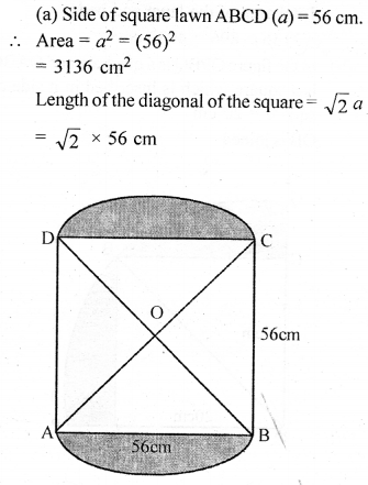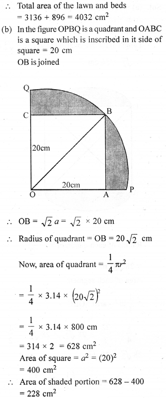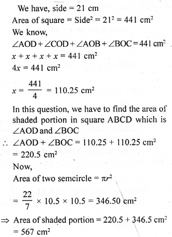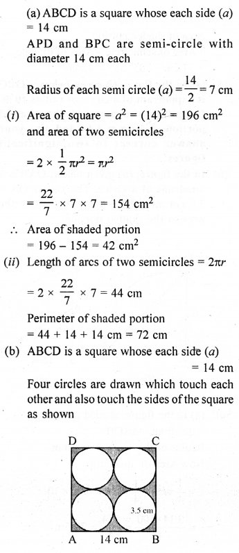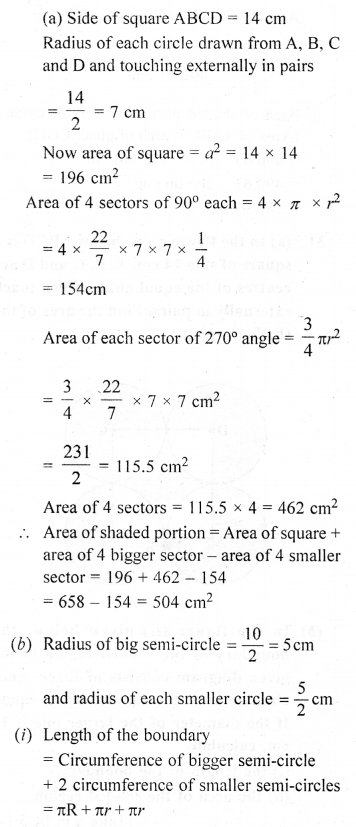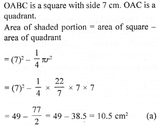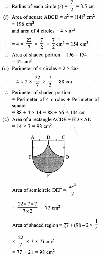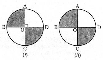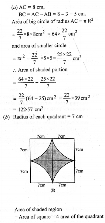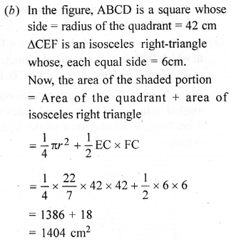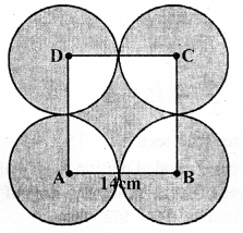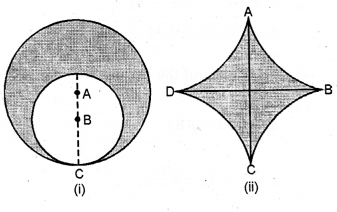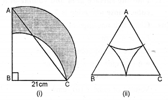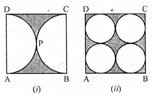 (b) In the figure (ii) given below, ABCD is a square. Points A, B, C and D are centres of quadrants of circles of the same radius. If the area of the shaded portion is 21\(\frac { 3 }{ 7 }\)