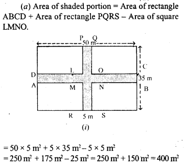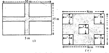 (a) The diagram (i) given below shows two paths drawn inside a rectangular field 50 m long and 35 m wide. The width of each path is 5 metres. Find the area of the shaded portion.