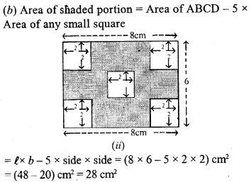(b) In the figure (ii) given below, there are five squares each of side 2 cm.
