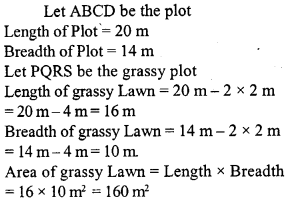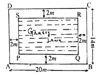 A rectangular plot 20 m long and 14 m wide is to be covered with grass leaving 2 m all around. Find the area to be laid with grass.