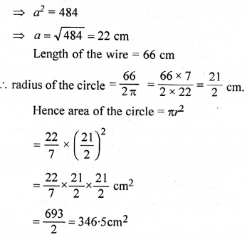 A wire when bent in the form of an equilateral triangle encloses an area of 36√3 cm2. Find the area enclosed by the same wire when bent to form: