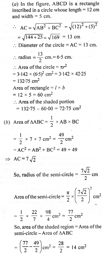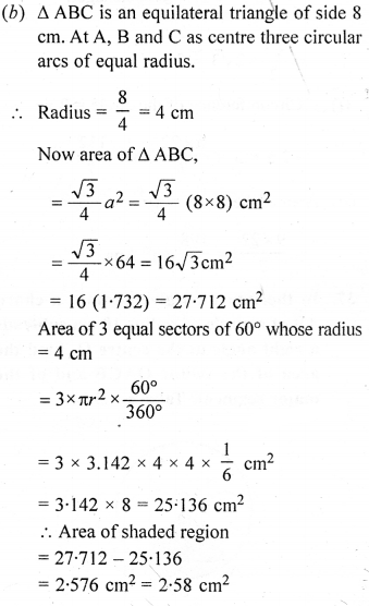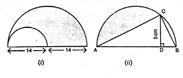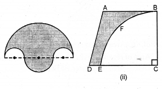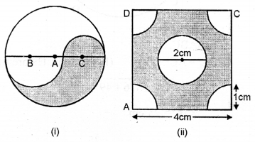 (b) In the diagram (ii) given below, calculate the area of the shaded portion. All measurements are in centimetres.