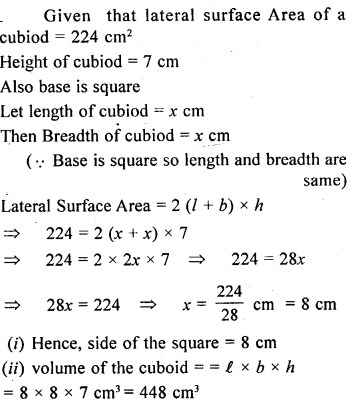 The lateral surface area of a cubiod is 224 cm2. Its height is 7 cm and the base is a square. Find :