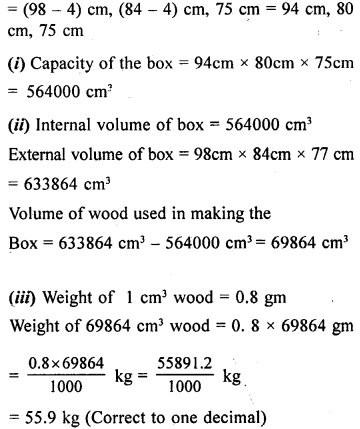 (iii) the weight of the box in kilograms correct to one decimal place, given that 1 cm3 of wood weighs 0.8 gm.