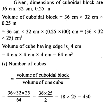 A cuboidal block of metal has dimensions 36 cm by 32 cm by 0.25 m. It is melted and recast into cubes with an edge of 4 cm.