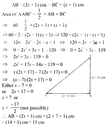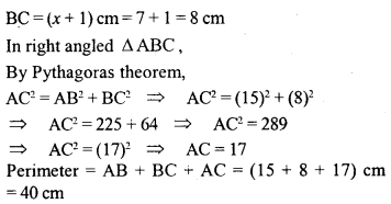 In ∆ ABC, ∠B = 90°, AB = (2A + 1) cm and BC = (A + 1). cm. If the area of the ∆ ABC is 60 cm², find its perimeter.