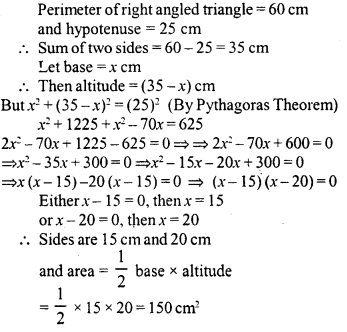 If the perimeter of a right angled triangle is 60 cm and its hypotenuse is 25 cm, find its area.