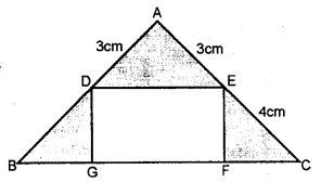 (b) In the figure given, ABC is an isosceles right angled triangle and DEFG is a rectangle. If AD = AE = 3 cm and DB = EC = 4 cm, find the area of the shaded region.