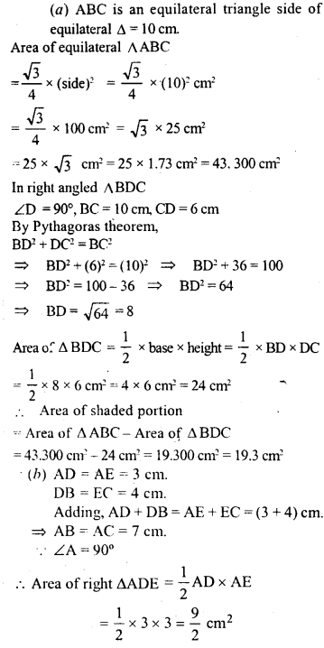 (a) In the figure (1) given below, ABC is an equilateral triangle with each side of length 10 cm. In ∆ BCD, ∠D = 90° and CD = 6 cm.