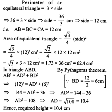 If the perimeter of an equilateral triangle is 36 cm, calculate its area and height.